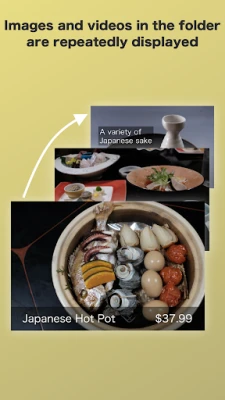 This app can be used in many situations: digital sign board; digital restaurant menu board; digital advertising poster board; digital information display; online photo frame/picture frame; infinite loop of photo slideshow. Google Drive signage tool can help your work.