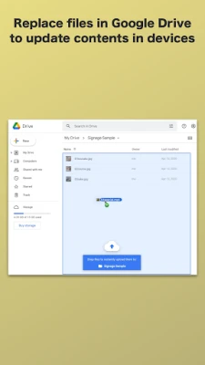 Digital signage content can be automatically updated by just placing images and videos in a designated folder in the Google Drive.