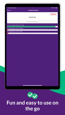 “The collection of words is great. I liked the visual indication of the three categories and their progress.”