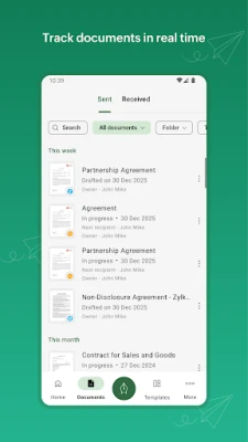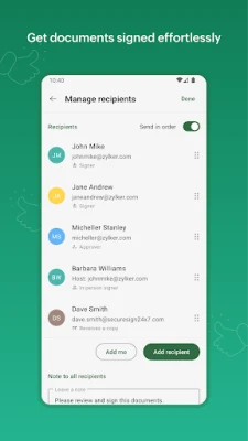 - Sign on the go: Sign and send documents anytime, anywhere.