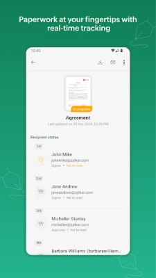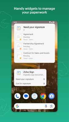 Zoho Sign is a secure and user-friendly digital signature solution that simplifies your document workflows. Whether you're a small business or a global enterprise, Zoho Sign helps you sign, send, and manage documents securely from your mobile devices while ensuring full legal compliance.